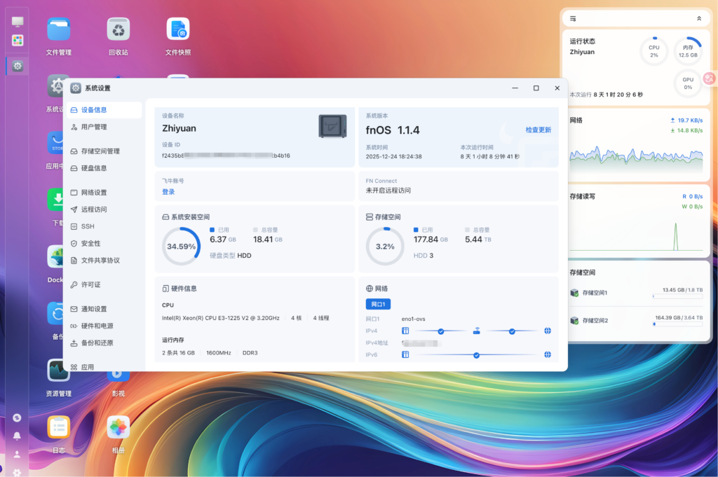 其他的就是飞牛的各种配置了,做下载机非常爽,500M 可以跑满。换成飞牛后可玩性就比较高了,虚拟机,docker,各种应用,慢慢探索嘛